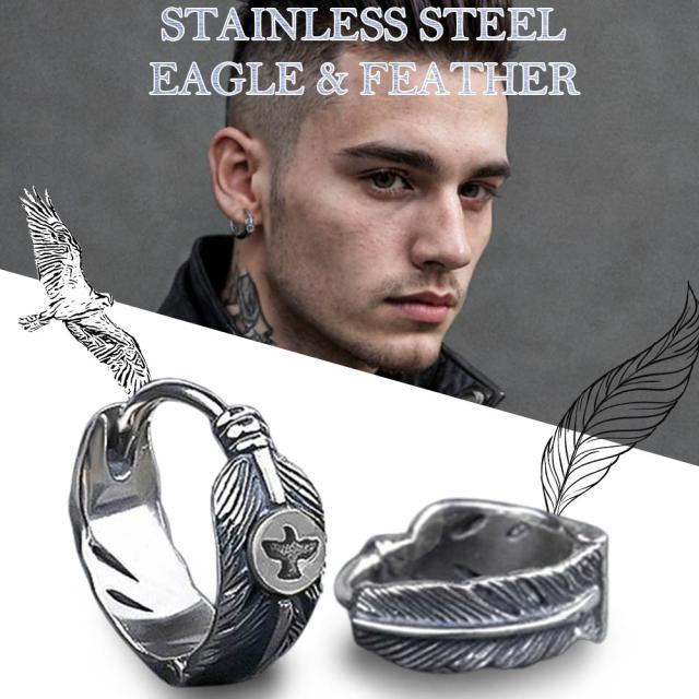 ピアス メンズ フェザー イーグル フープピアス ステンレス リングピアス 鷲 羽 ネイティブ シルバー 銀 ユニセックス アンティーク