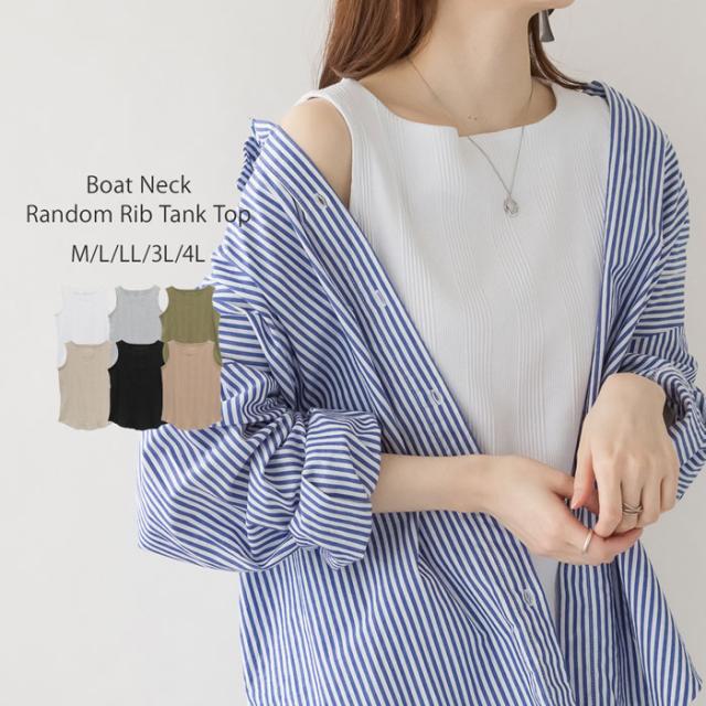 ボートネックランダムリブタンクトップ