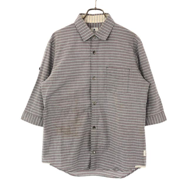 アールニューボールド ボーダー 7分袖 コットンシャツ M グレー R.NEWBOLD メンズ