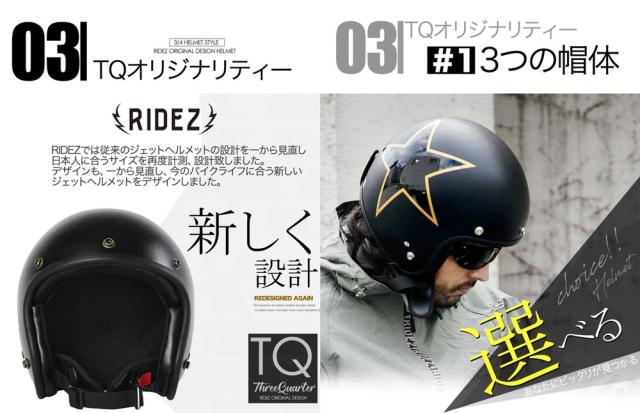 RIDEZのJETヘルメットの集大成である、TQヘルメット是非ご覧ください。