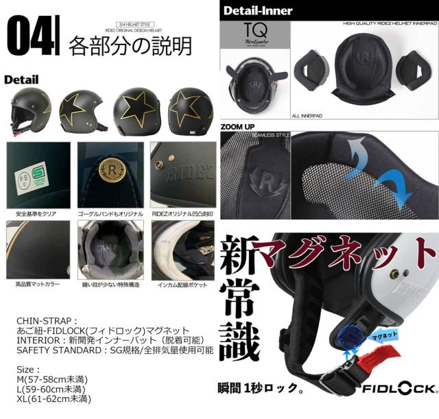 ★送料無料★RIDEZ TQ02-SE BLITZ マグネットバックル採用!瞬間1秒ロック!FIDLOCK(フィドロック)「新しいジェットヘルメットの形」/ライズ
