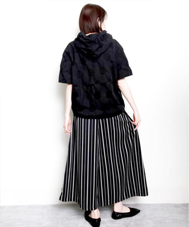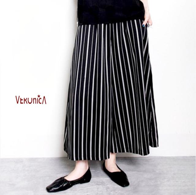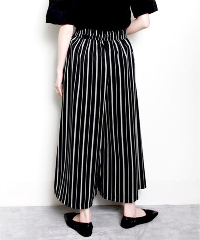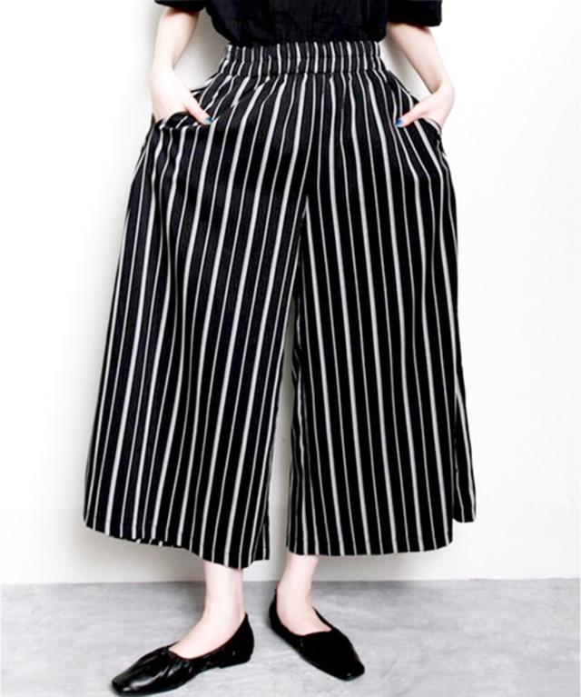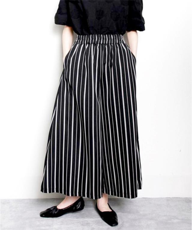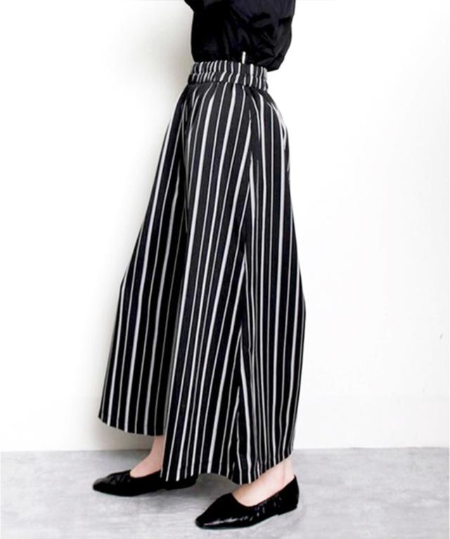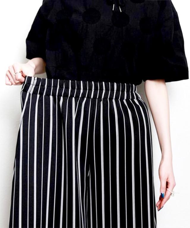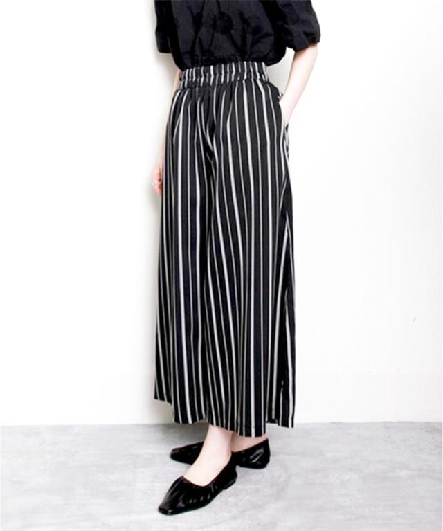 【即納】ストライプ柄ワイドパンツ 美脚 ウエストゴム ボトムス 春夏 新作パンツ