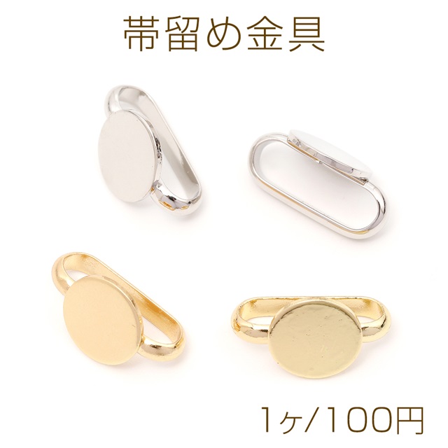 帯留め金具 ラウンド型 平台座 帯留めパーツ 帯留め台座 オビドメ金具 和装小物パーツ 丸型 銅製 約10mm (1ヶ)