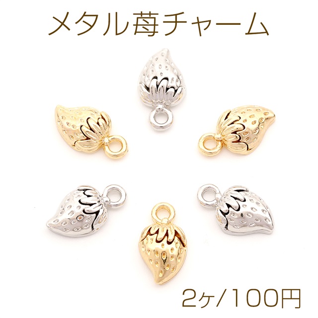 立体メタルチャーム いちごモチーフ メタルいちごチャーム ヘタあり 1カン付き約 7×12mm(2ヶ)