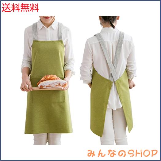 [JIAHU] エプロン レディース メンズ 首掛け h型 カフェ風 シンプル おしゃれ かわいい 北欧 おしりが隠れる ポケット付き 男女兼用 (グ