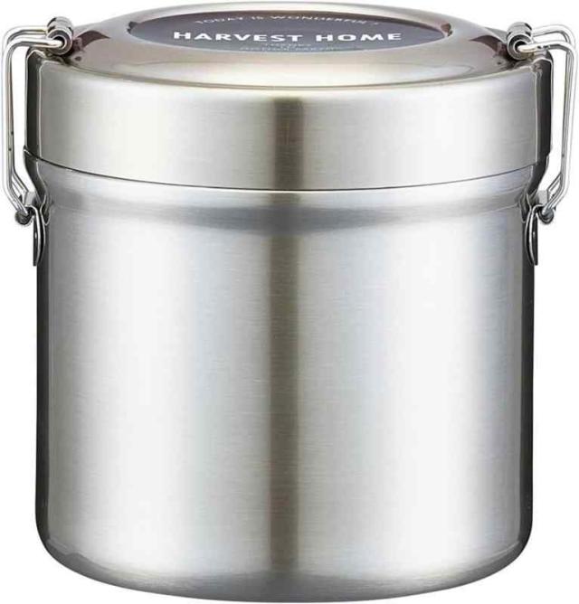 素材・材質:本体・フタ=ステンレス(アクリル樹脂塗装) 止め具=ステンレス 中容器・中フタ=ポリプロピレン パッキン=シリコーンゴム 底板=エラストマー