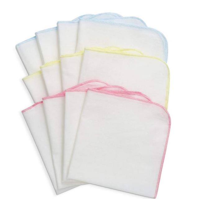 セット内容:ガーゼハンカチ 12枚。サイズ:30×30cm。縁の色:ピンク(4枚)、クリーム(4枚)、ブルー(4枚)。素材:綿100%。中国製。一枚一枚検品済み。商品が到着30日以内、交換が出来ます。