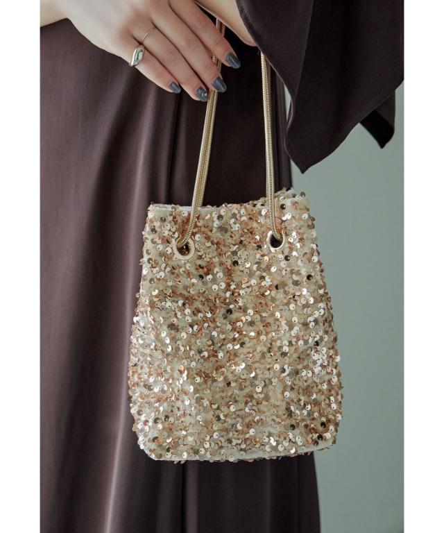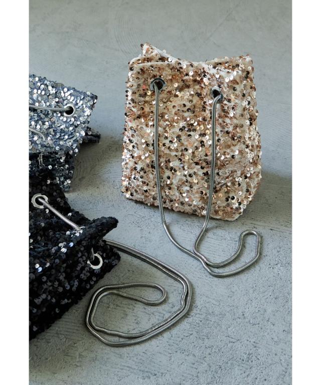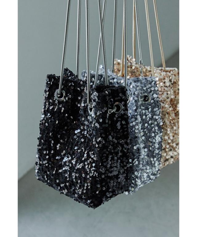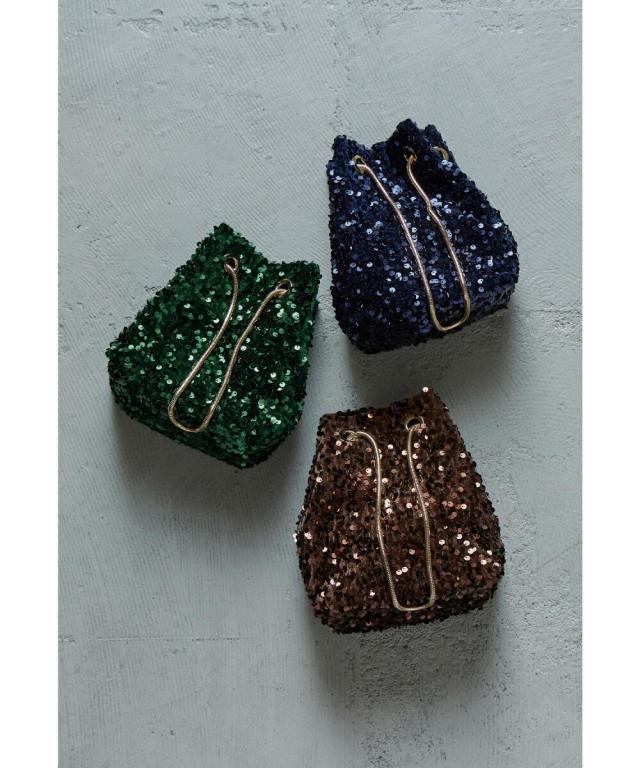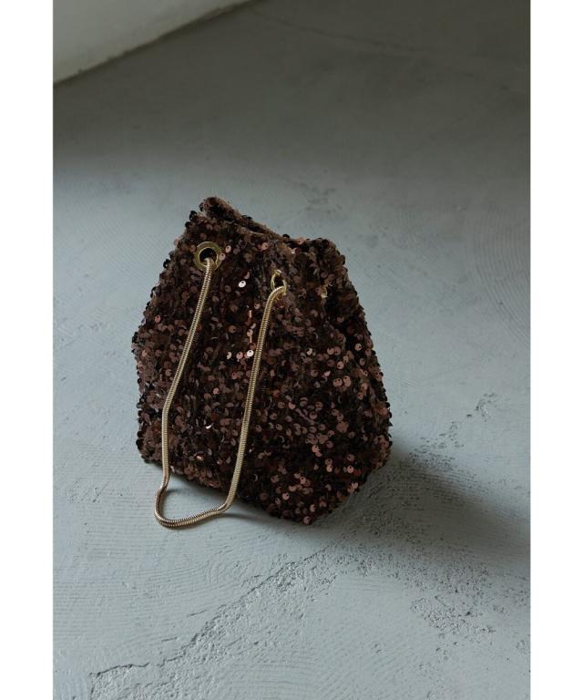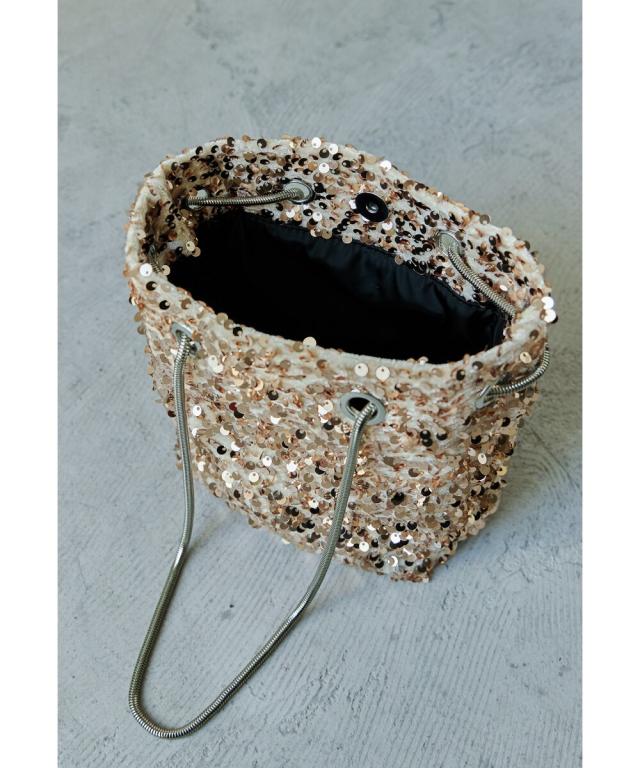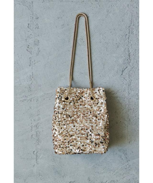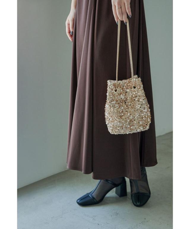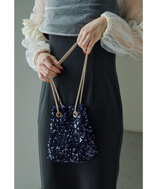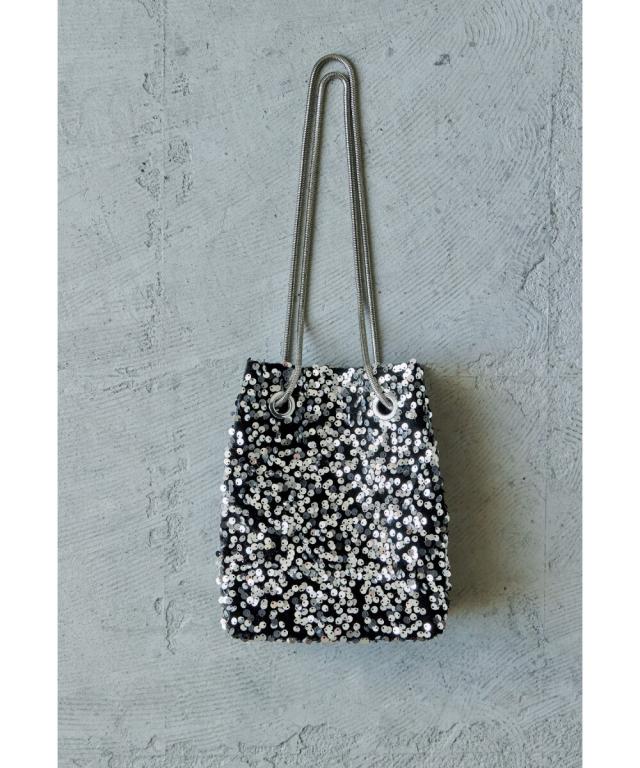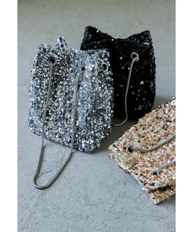 niana ニアナ 存在感あるアクセサリーのような巾着スパンコールバッグ。