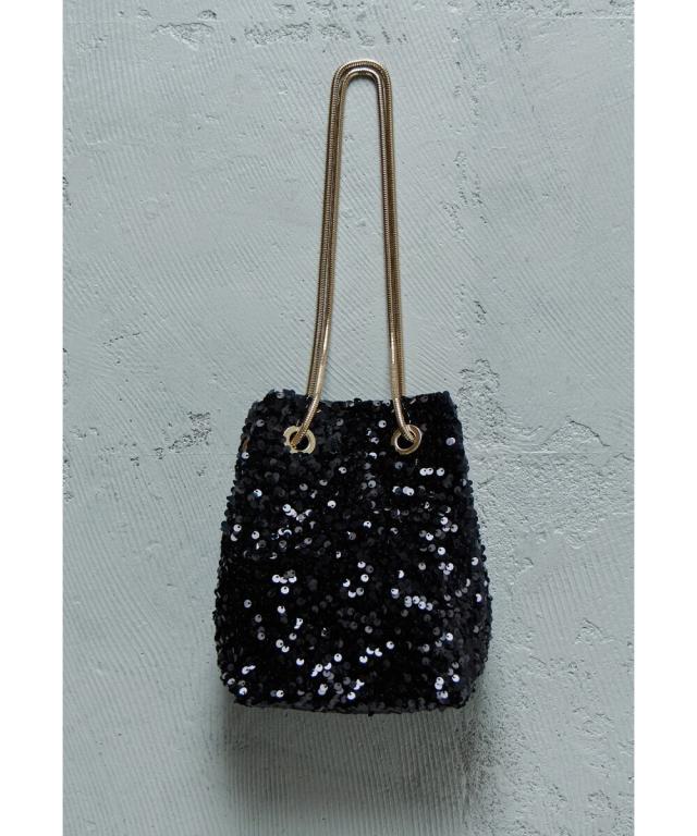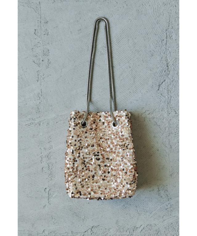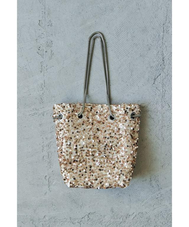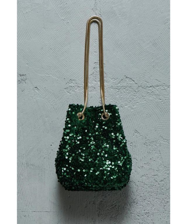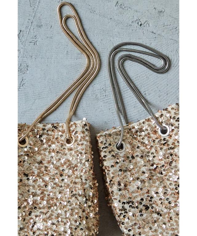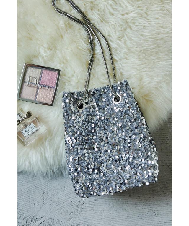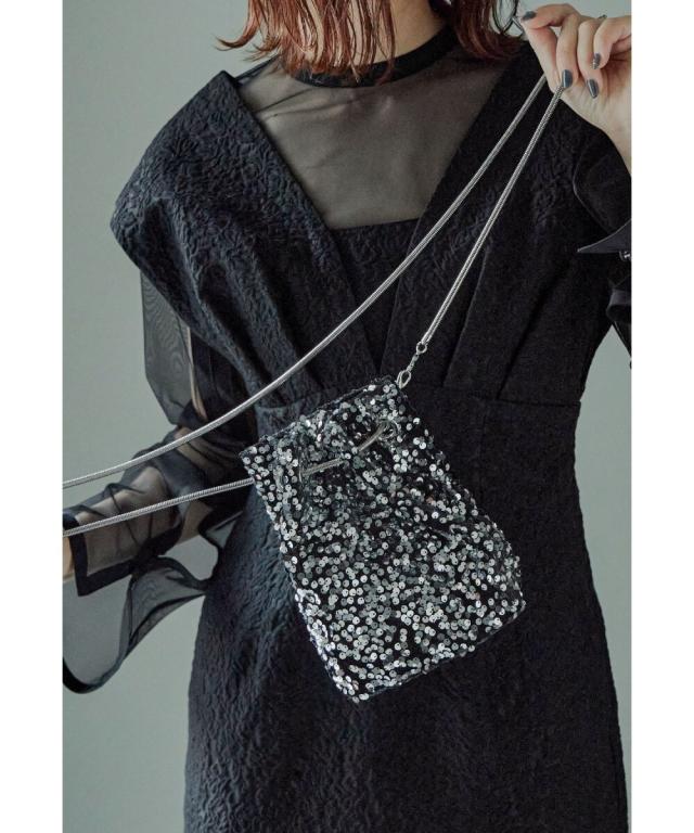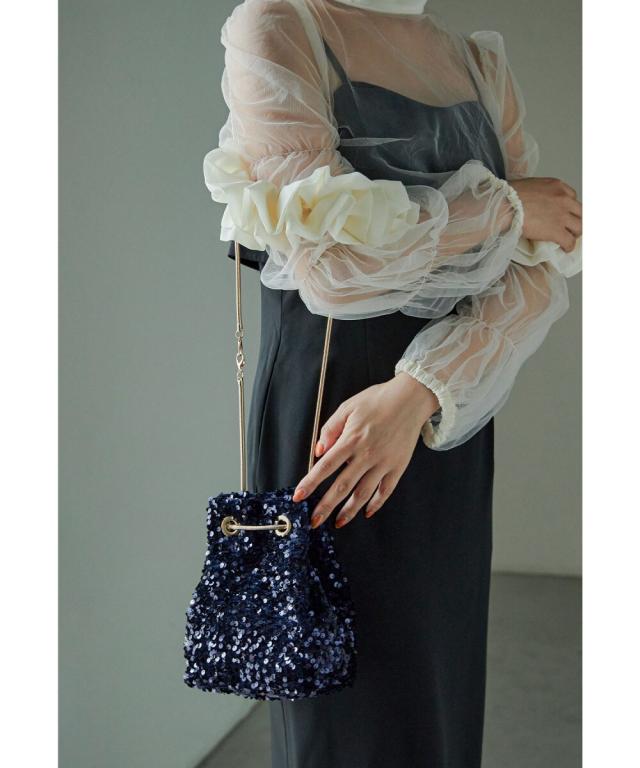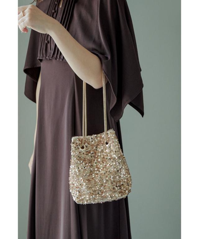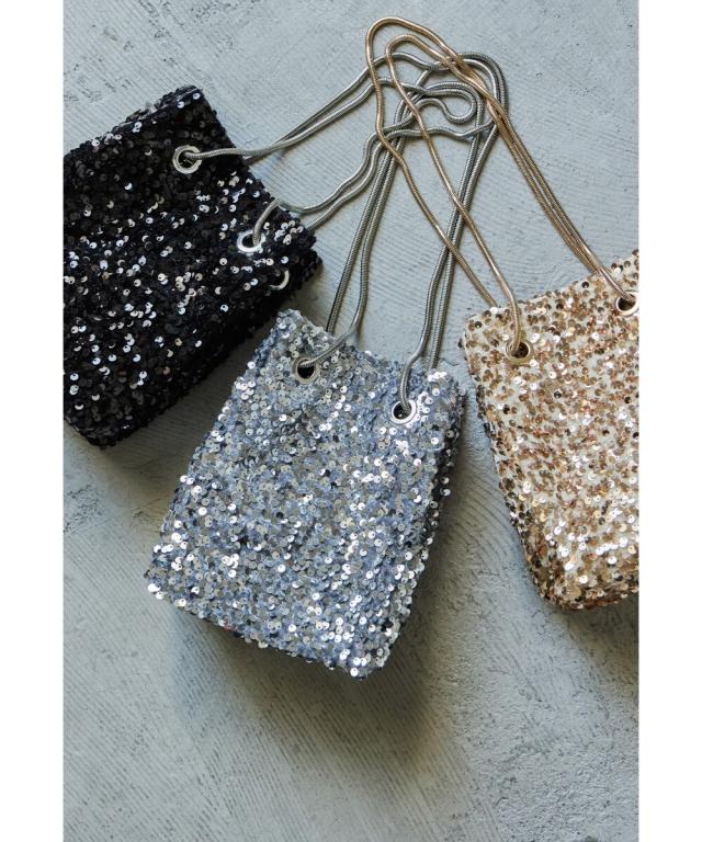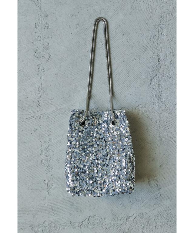 niana ニアナ 存在感あるアクセサリーのような巾着スパンコールバッグ。