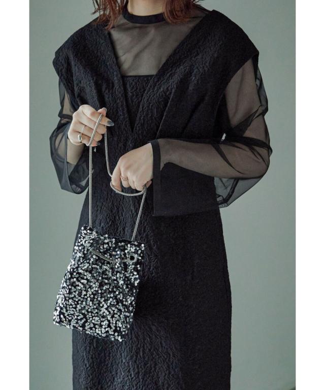 スマホやミニ財布など小物がしっかり入るのでパーティーシーンだけでなくデイリーでもおすすめです。
