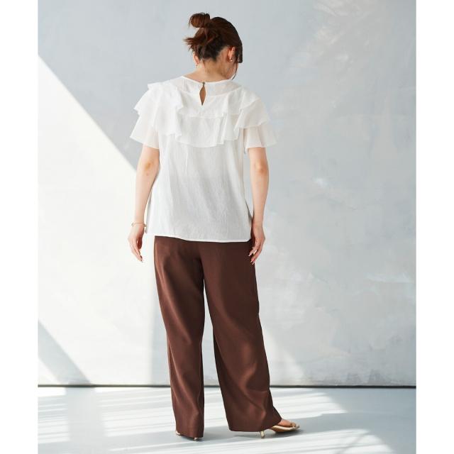 サイズ感:バックゴム使用でゆとりのあるワイドパンツ。