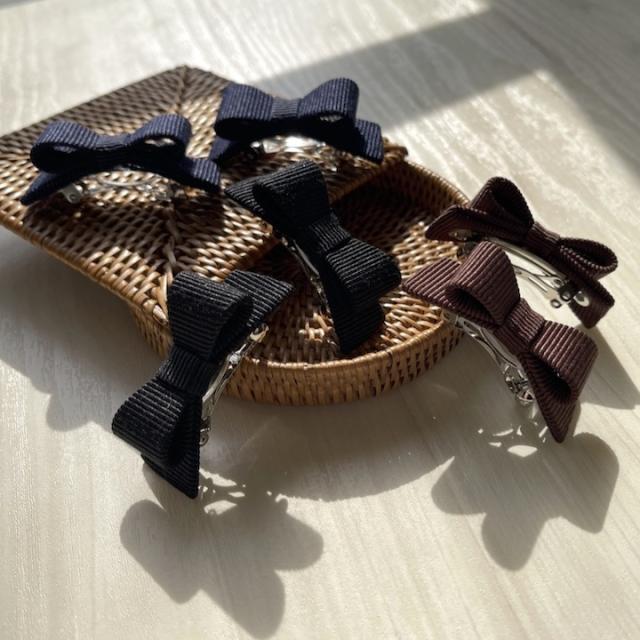 バレッタ 2個セット 小さめ リボン ミニバレッタ 極小 ミニ 小さい ヘアクリップ シンプル リボン グログラン ヘアアクセサリー セット レディース 入学式 卒業式 冠婚葬祭 大人 子供 ミニバレッタ 通勤 通学