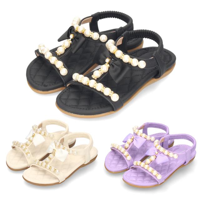 サンダル キッズ ジュニア ガールズ 女の子 ストラップサンダル 靴 マシュマロフィット ペタンコ ラヴヴィーナス 17514 Love venus