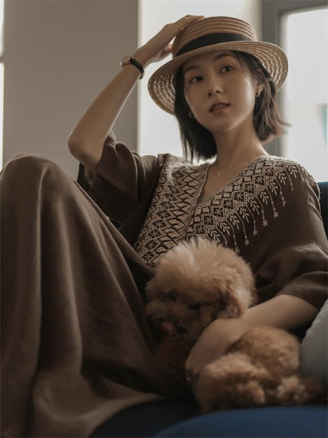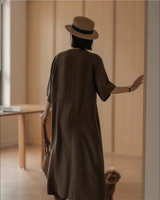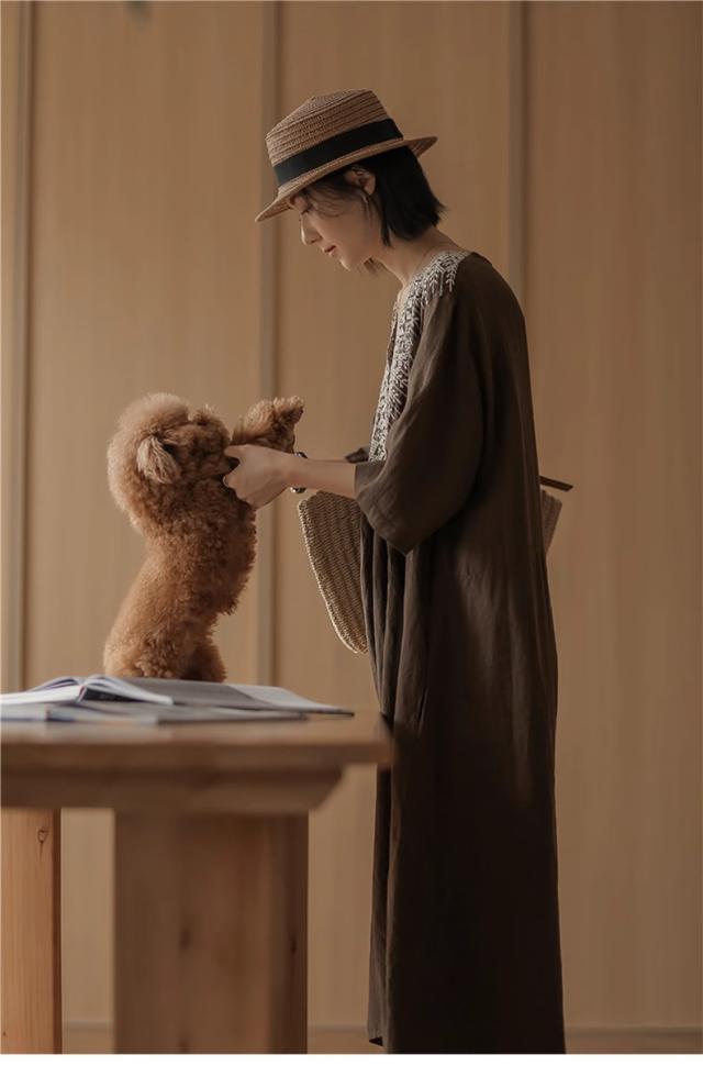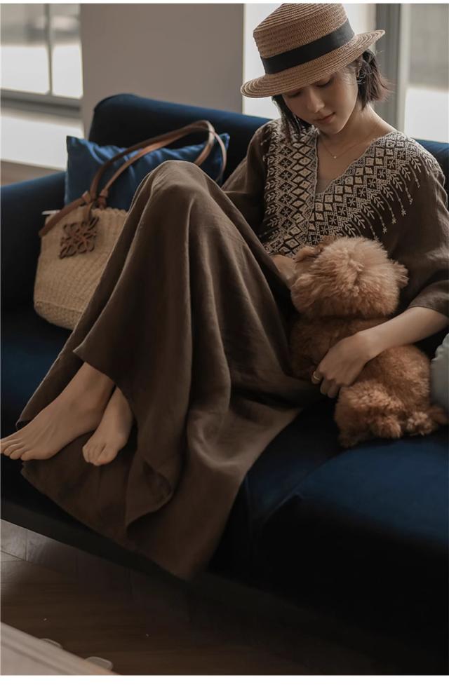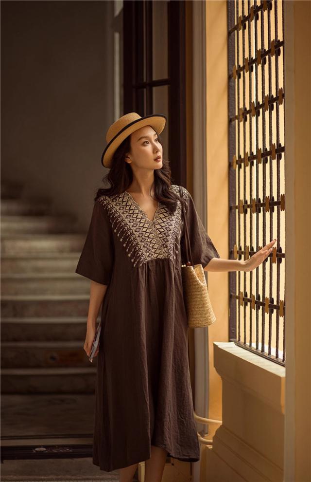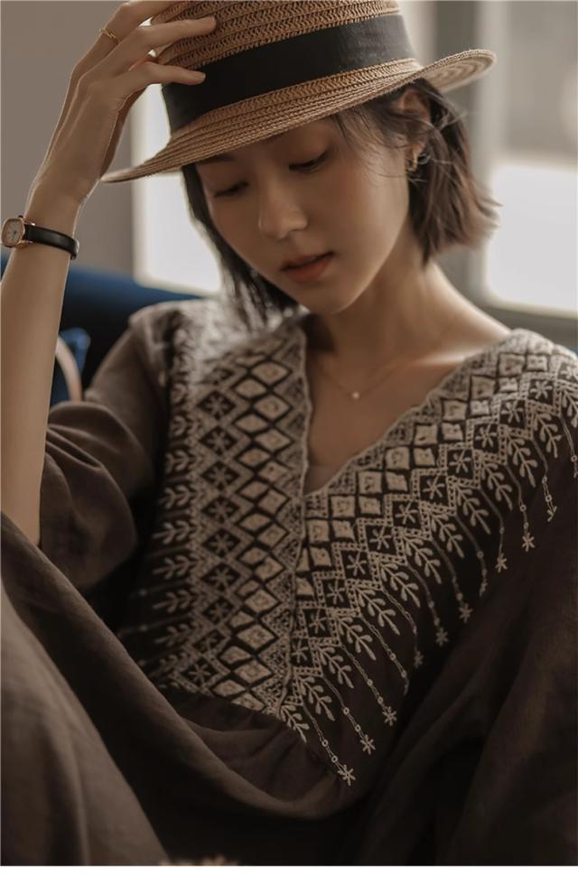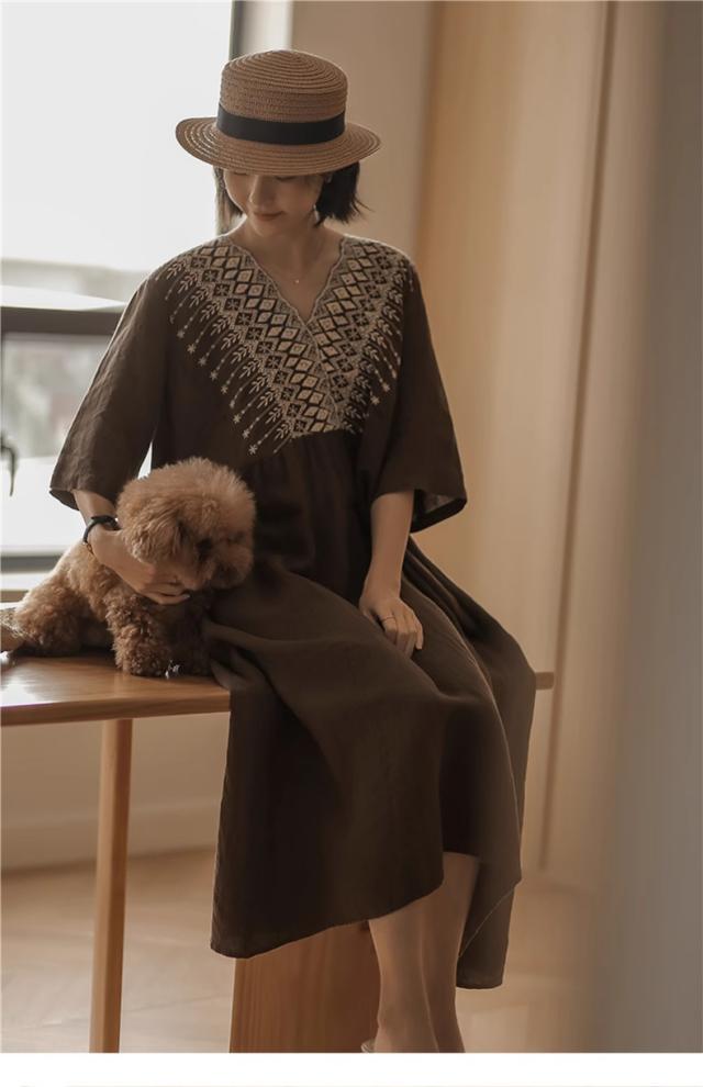 夏ワンピース 刺繍 レディース ロング丈 五分袖 Vネック 綿100% 大きいサイズ カフタンワンピース ちょっぴりレトロ感がある 大人ムードのワンピース