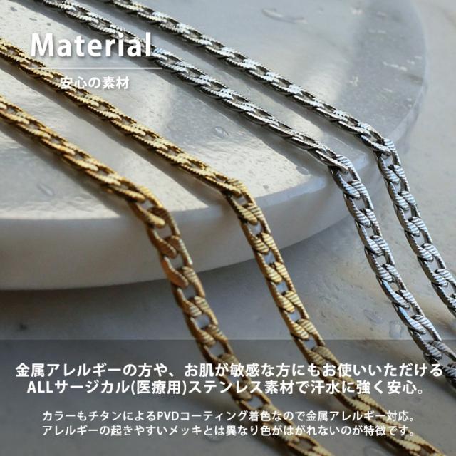 素材には、金属アレルギーの方にも安心なサージカルステンレスを使用。シルバーやホワイトゴールド、プラチナで金属アレルギーが出てしまう方にもオススメです。