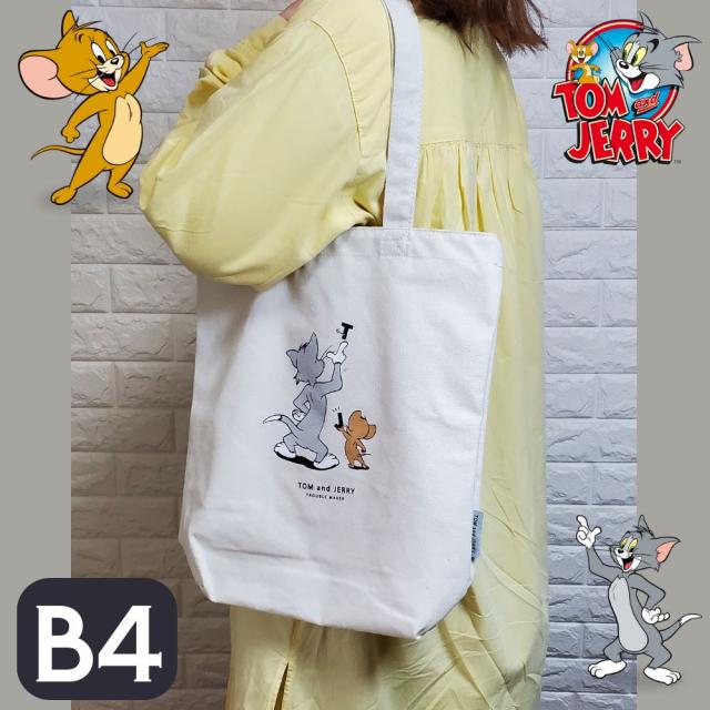 トムとジェリー トートバッグ 大き目 帆布肩掛け カジュアル キャンパスバッグ 手提げ 斜め掛け ショルダー TOM&JERRY B4収納 大容量 シンプル かわいい ギフト プレゼント レッスンバッグ メール便なら送料無料