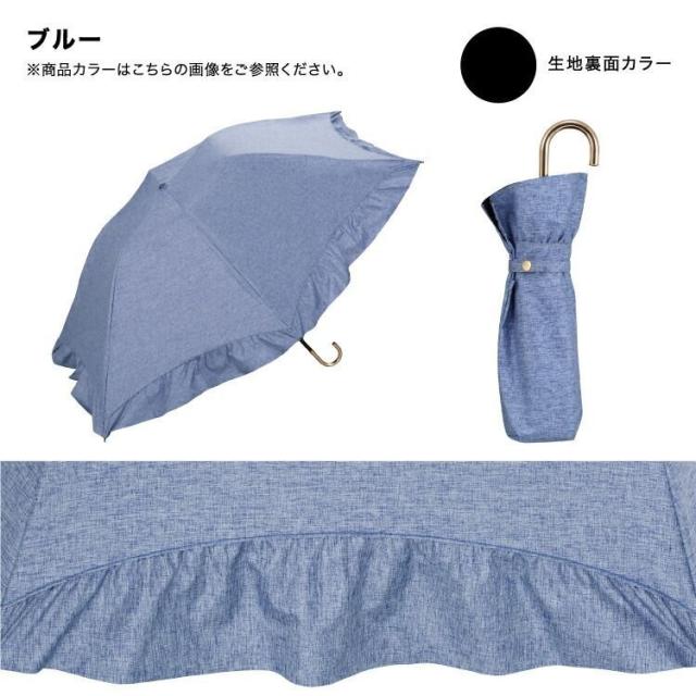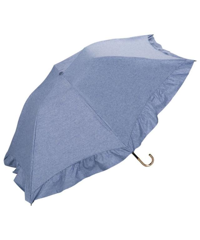 Wpc. 遮光 ドームパラソル フリル ミニ ブルー 日傘 折りたたみ 完全遮光 100%カット 紫外線対策 UV対策 折傘
