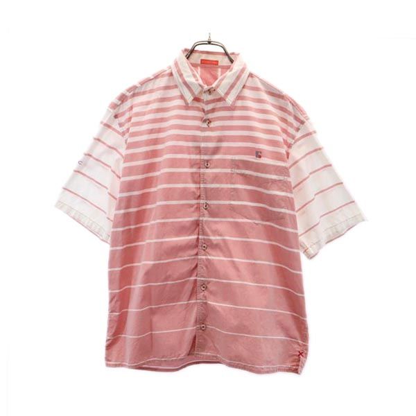 グリーンクラブ ボーダー柄 半袖 シャツ 3 レッド×ホワイト GREENCLUBS メンズ
