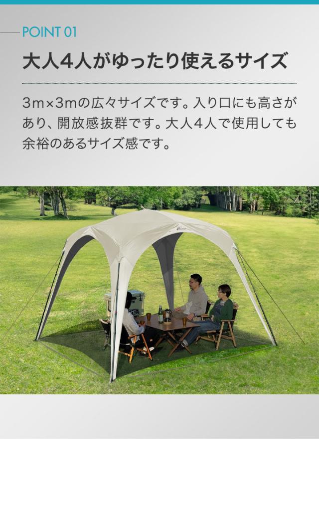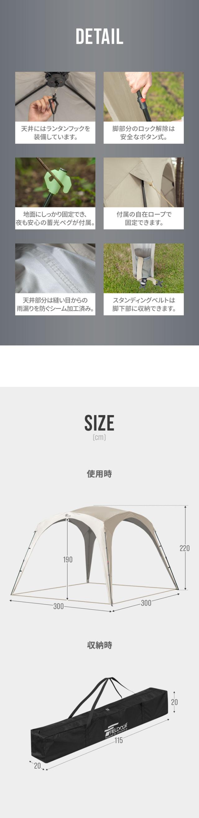 | サイズ: (約)幅300cm×奥行300cm×高さ220cm ※収納時 : (約)幅115cm×奥行20cm×高さ20cm |