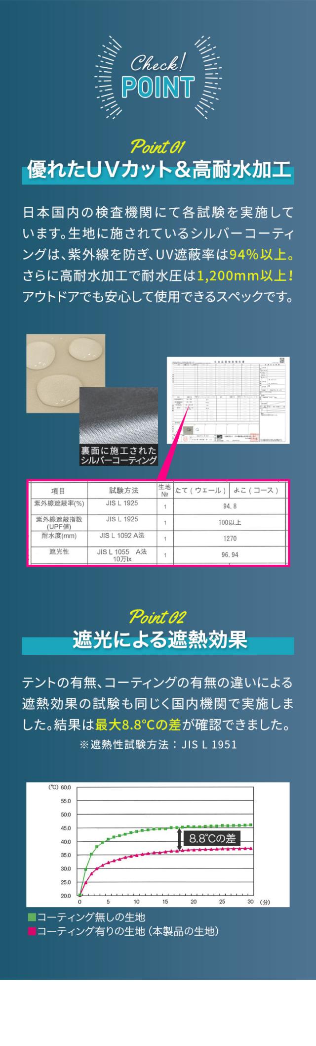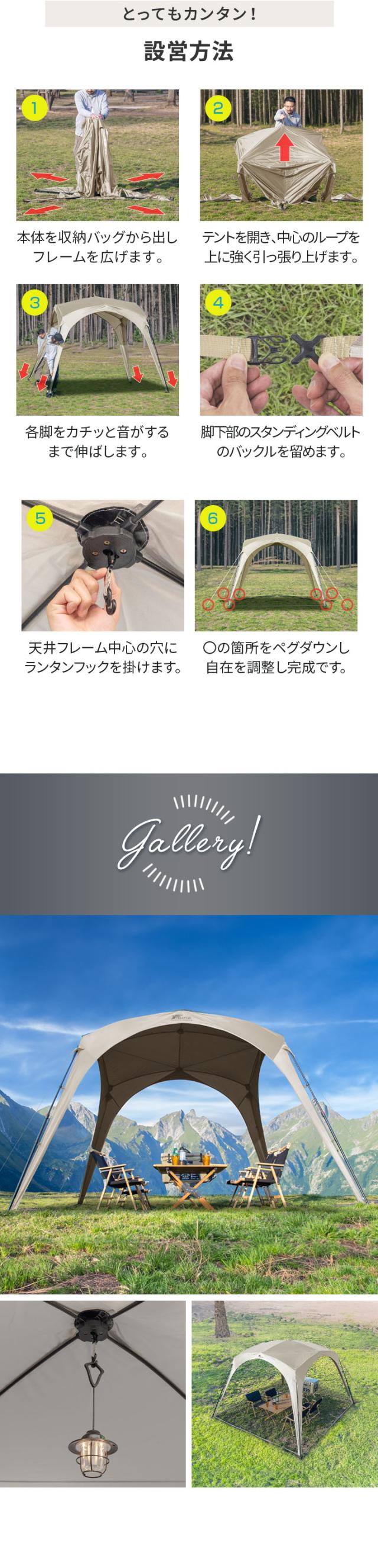 | 材質: ・フライシート : 150Dポリエステル(シルバーコーティング) 他 ・フレーム : スチール・グラスファイバー 他 |