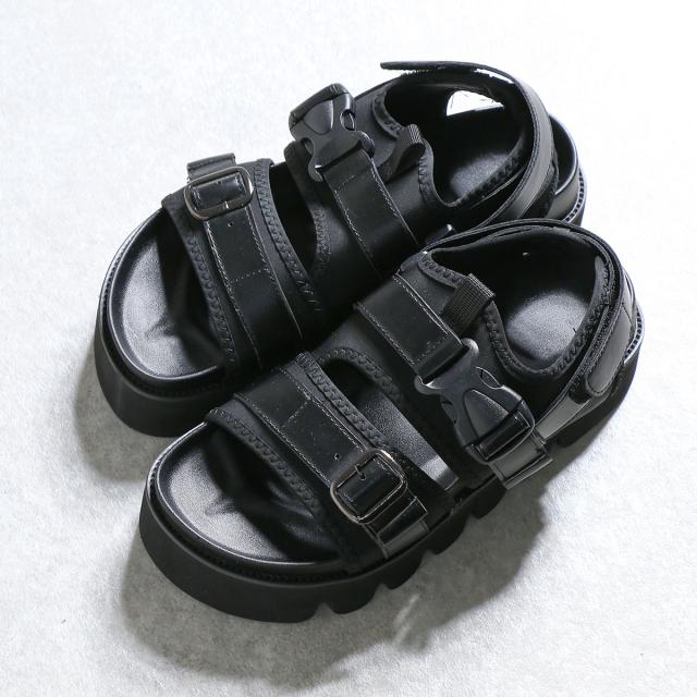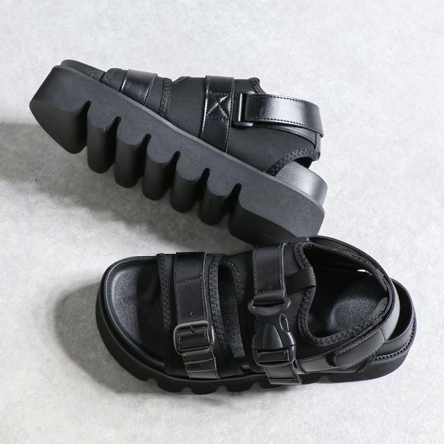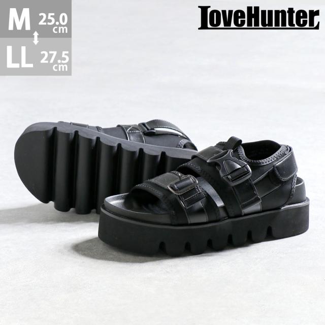 スポーツサンダル メンズ ベルト バックル マジックテープ キャタピラーソール 厚底 カジュアル 春 夏 4cmヒール No.1970 25cm-27.5cm 黒 LOVEHUNTER ラブハンター