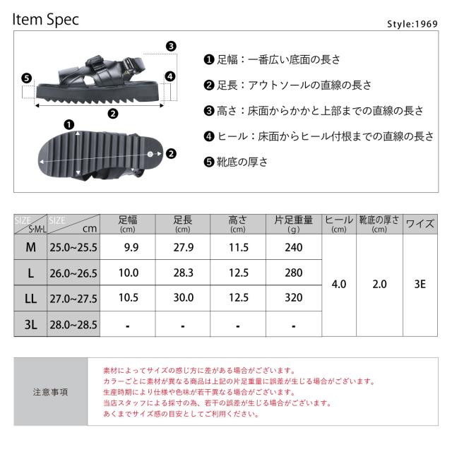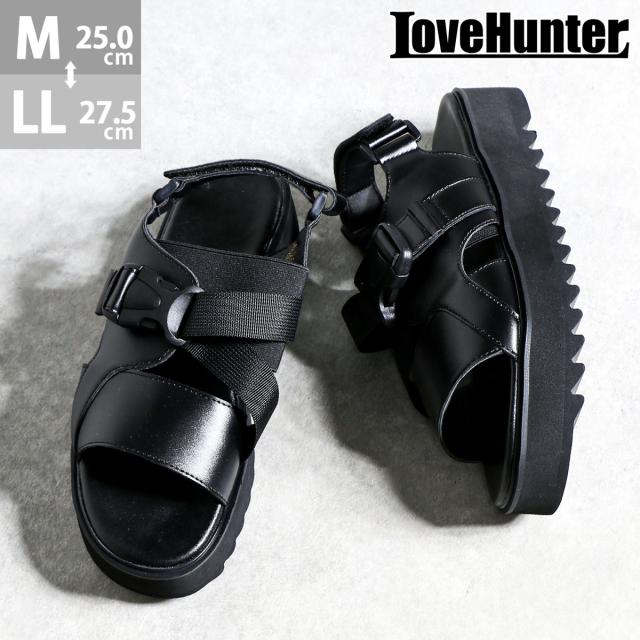 スポーツサンダル メンズ ベルト バックル マジックテープ シャークソール 厚底 春 夏 4cmヒール No.1969 25cm-27.5cm 黒 LOVEHUNTER ラブハンター