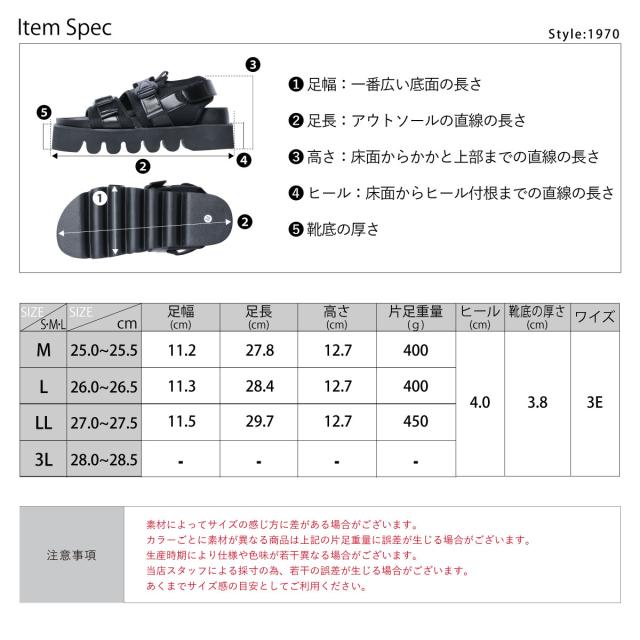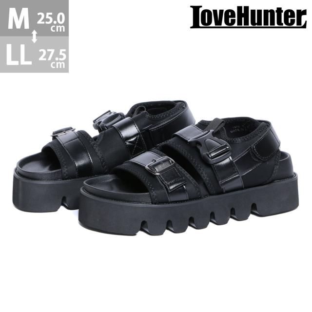 スポーツサンダル メンズ ベルト バックル マジックテープ キャタピラーソール 厚底 カジュアル 春 夏 4cmヒール No.1970 25cm-27.5cm 黒 LOVEHUNTER ラブハンター