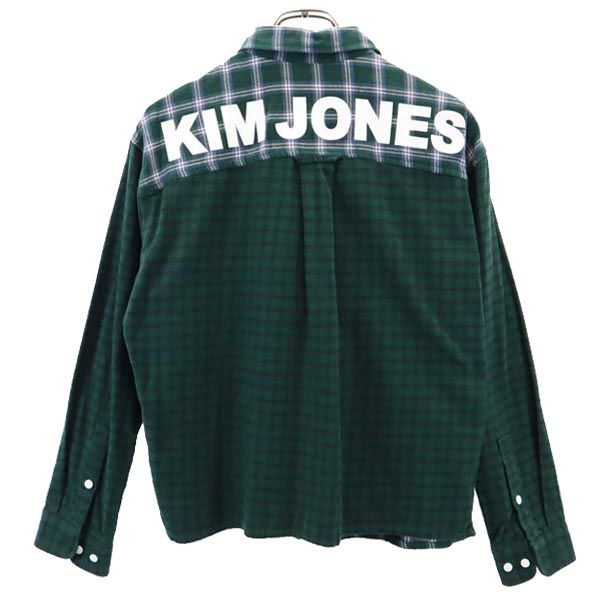 ジーユー × キムジョーンズ コラボ バックプリント チェック柄 長袖 ネルシャツ L グリーン系 GU メンズ