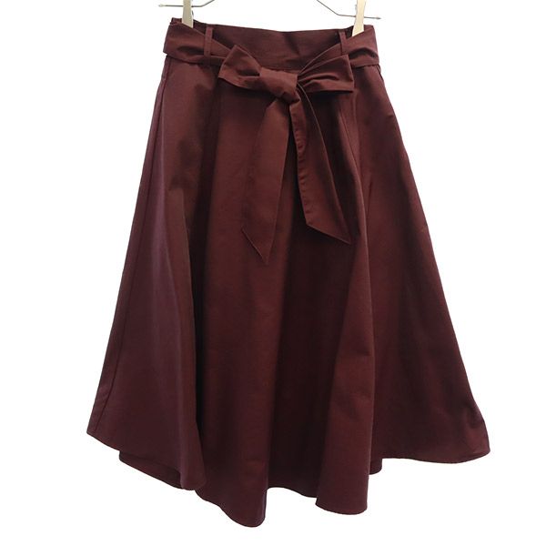 ナノべース ナノユニバース ミモレ丈 ウエストリボンボリュームギャザー フレアスカート F ボルドー nano BASE レディース
