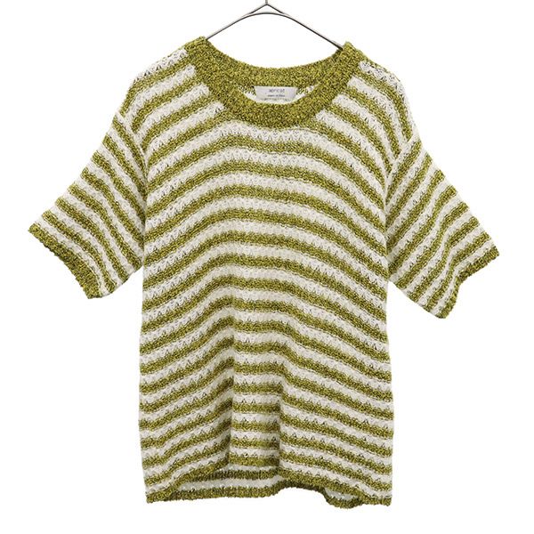 アプリコット イタリア製 半袖 ニット S イエロー×ホワイト apricot セーター メンズ