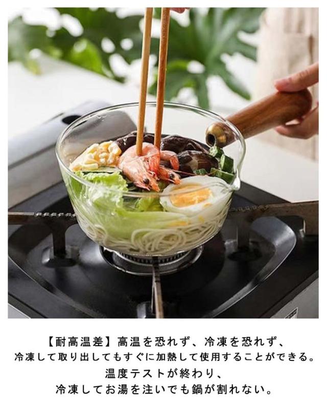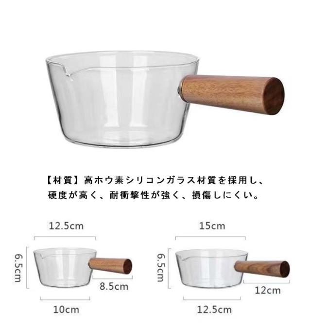 送料無料 ミルクパン 片手鍋 ガラスパン ガラス鍋 ソースパン ミニパン ミニ鍋 ガラスポット ガラス製 クリア 透明 北欧風 耐熱ガラス V字型注ぎ口 お粥鍋 台所用品 透明 耐熱 可愛い 400ml 600ml キッチン 調理器具 多機能 木製ハンドル