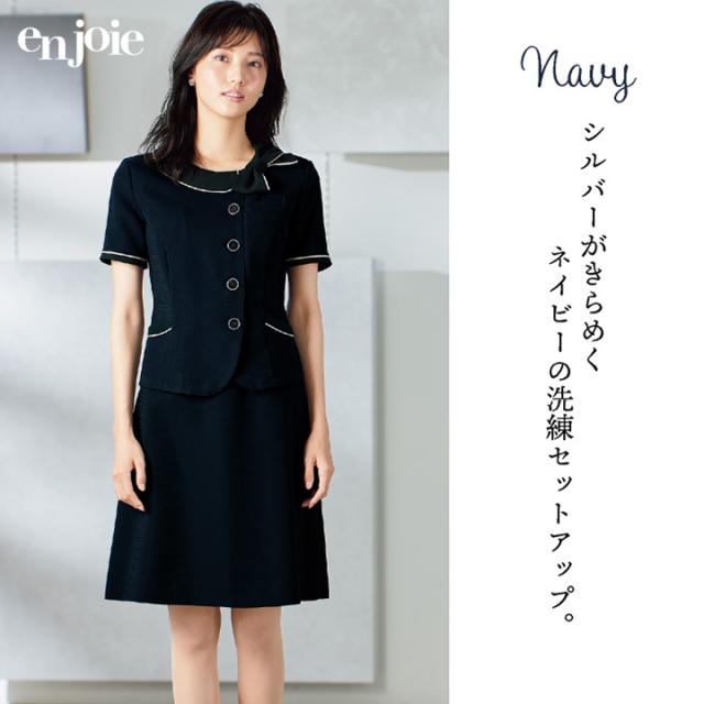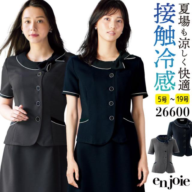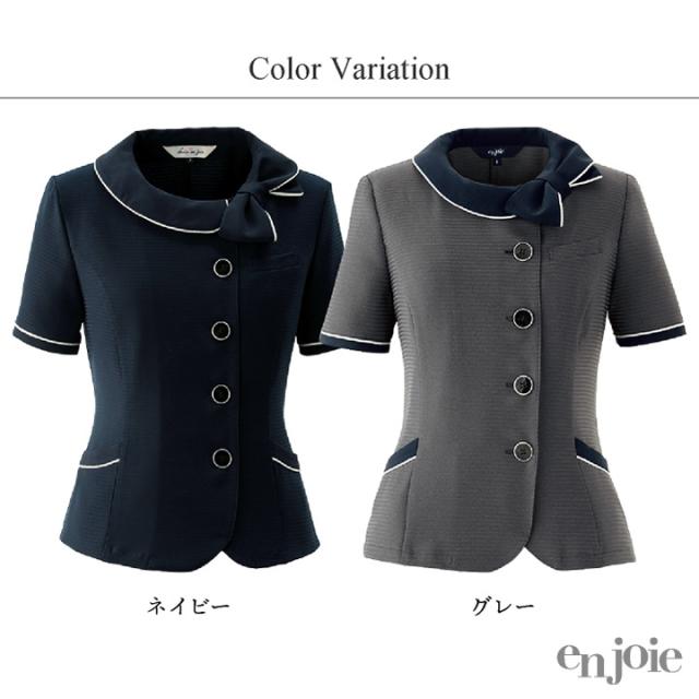 アンジョア オーバーブラウス 半袖 接触冷感 家庭洗濯 春夏 オフィス 医療事務 病院 受付 フロント 事務服 営業 接客 コンシェルジュ OLビジネス 制服 ユニフォーム グレー ネイビー 紺 5号 7号 9号 11号 13号 15号 en joie jo-26600