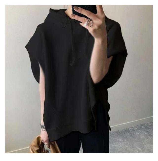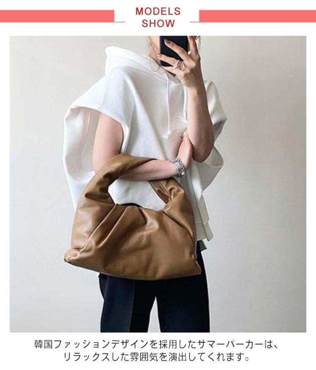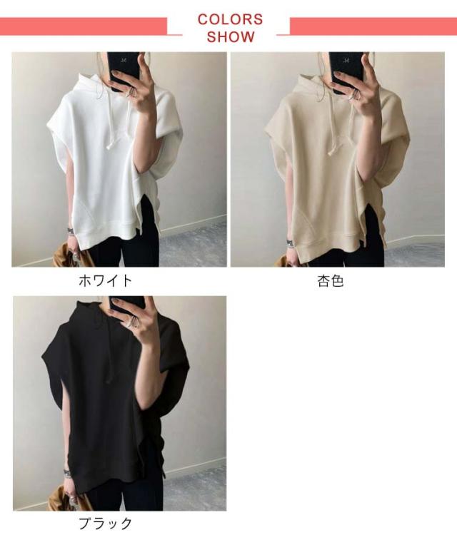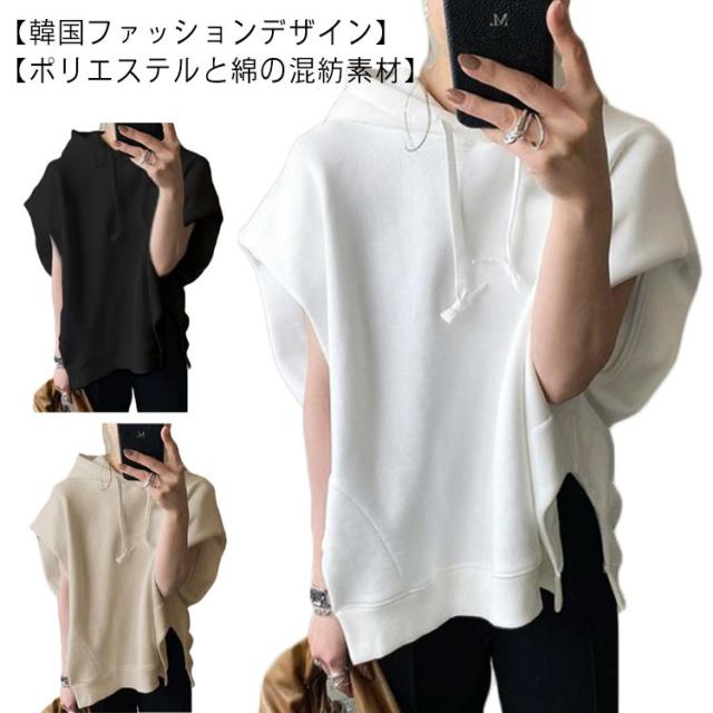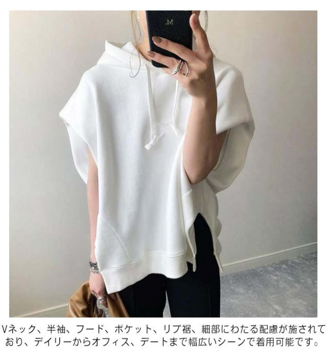 夏服 フード付きTシャツ 半袖パーカー カジュアル 幅広カフス 着?せ お洒落 パーカー 半袖 スウェット 夏 秋 春 トレーナー フード付き 半袖パーカー トップス 重ね着 レイヤード風 無地 シンプル ゆったり 大きいサイズ ゆるっと ビッグシルエット ホワイト レディース