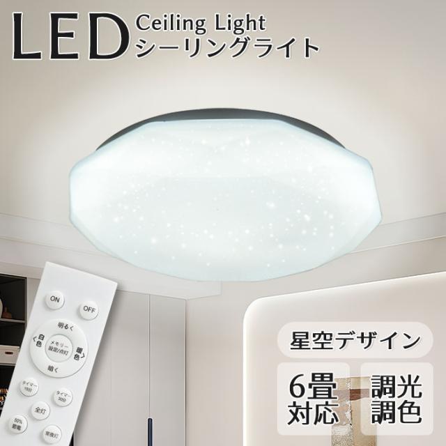 ledシーリングライト 星空 昼光色 電球色 常夜灯 調光 約6畳 工事不要 リモコン付き 照明 天井照明 長寿命 明るい 節電 リモコン 照明 取付簡単 玄関 寝室 和室 キッチン おしゃれ 照明器具 リビング照明 省エネ