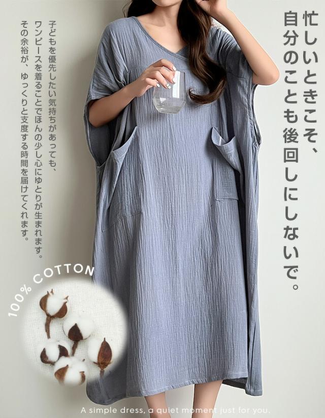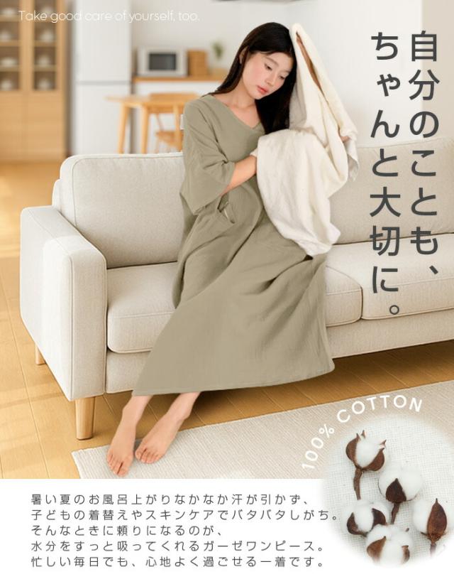 肌に優しい綿100%素材を使用したガーゼワンピース。