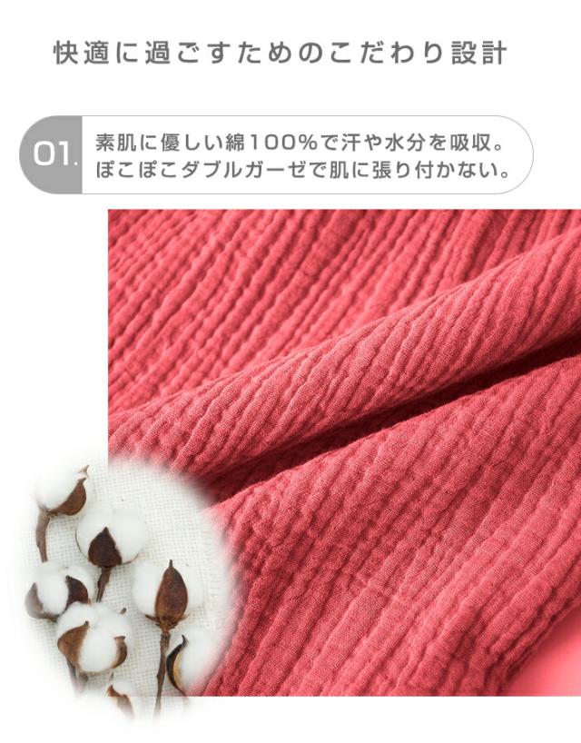 柔らかなガーゼ素材が肌に優しくフィットし、