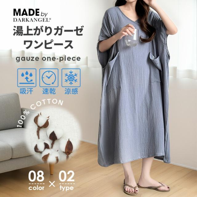 50%OFFクーポン対象!湯上りガーゼワンピース ガーゼ ワンピース 湯上りワンピ タオルワンピ ガーゼ ルームワンピース 綿100% ウェア 吸水 軽い ルームウェア 【 湯上りガーゼワンピース 】 ダークエンジェル 春新作 ●即納●