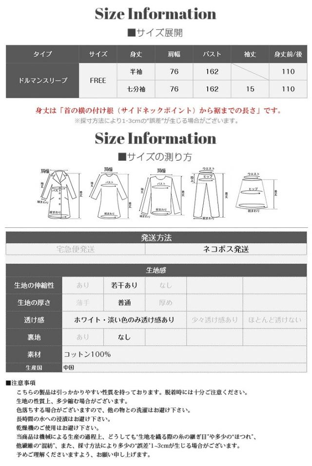 選べる2タイプ(ドルマンスリーブ半袖/ドルマンスリーブ七分袖)をご用意し、