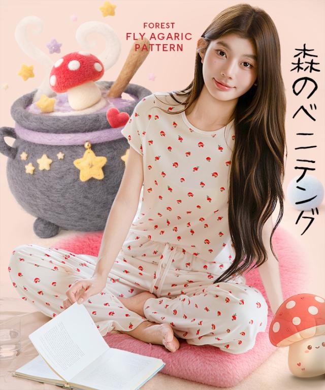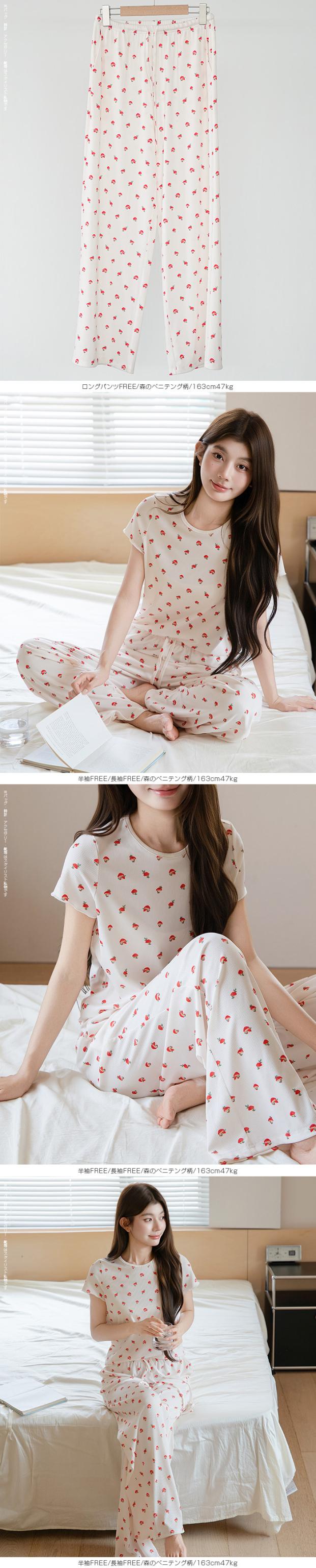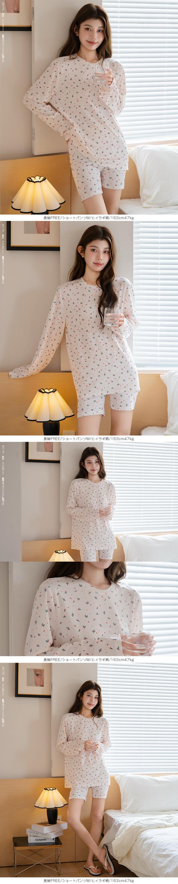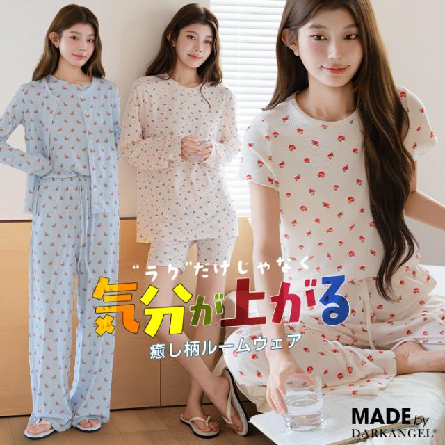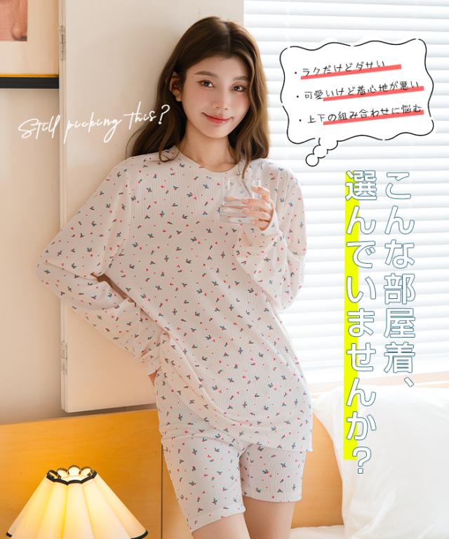先着33名様50%OFFクーポン!ルームウェア セットアップ パジャマ レディース ワンマイルウェア 部屋着 可愛い 上下セット 総柄 トレンド 韓国 Uネック ラウンドネック 半袖 春 夏【組み合わせ選べる総柄ルームウェア】