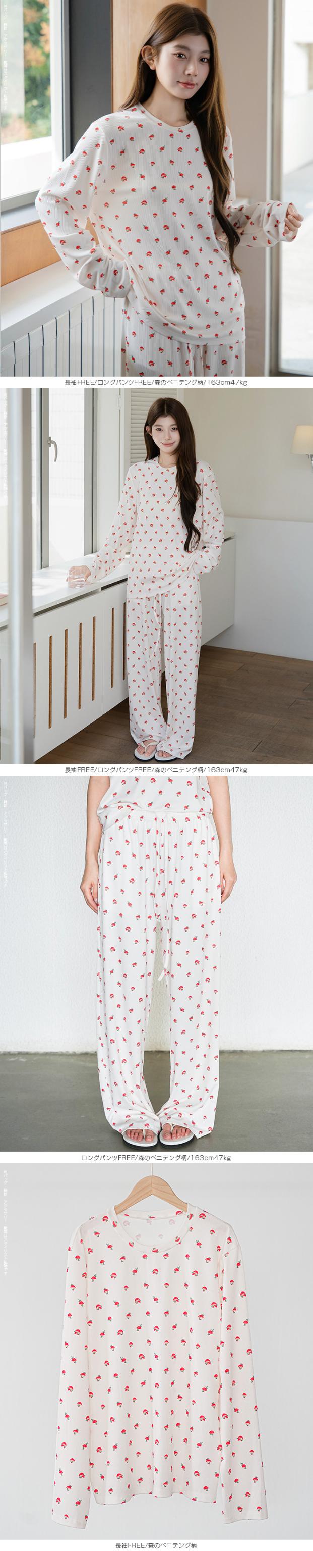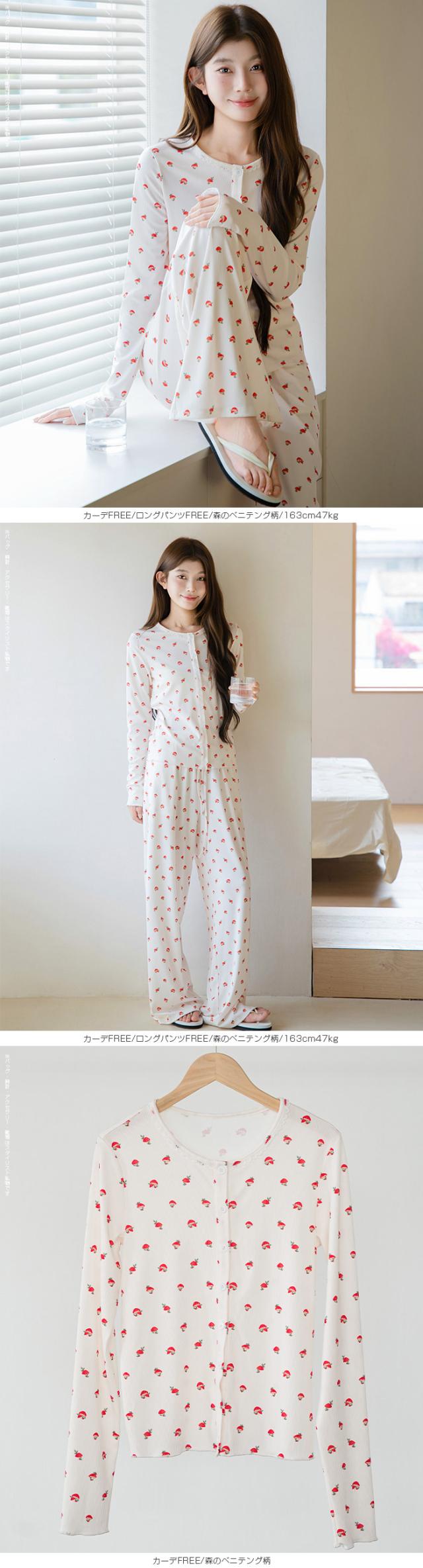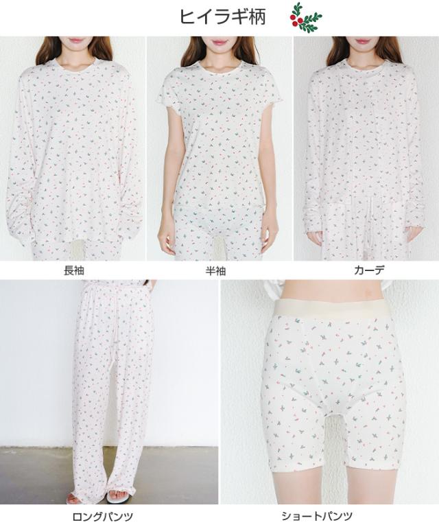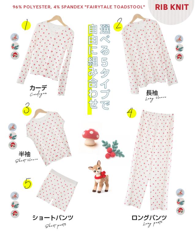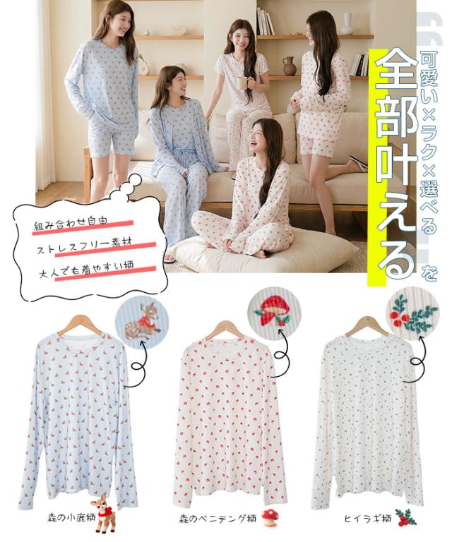 毎日着るものだから、 “ラク”だけじゃなく“気分が上がる”ものを選びたい。 そんな大人の女性に向けた、 可愛さと心地よさを両立したルームウェアセット。 長袖・半袖・カーディガン・ロングパンツ・ショートパンツの 5タイプから自由に選べる組み合わせ仕様。 森のベニテング、バンビ、ヒイラギ—— どこか優しくて、甘すぎない“ちょうどいい可愛さ”の柄が、 おうち時間をそっと豊かにしてくれます。 さらに、トップス・カーデ・パンツを自由に選べる 組み合わせ自在の5タイプ展開。 気温やシーン、ライフスタイルに合わせて、 “自分にちょうどいい1セット”が作れます。 おうち時間はもちろん、ワンマイルや旅行にも使える “着るたび気分が上がるルームウェア”です。 【素材感・着心地】 伸縮性のあるリブ素材(ポリエステル96%・ポリウレタン4%)を使用。 ・やわらかく身体にフィット ・軽くてストレスフリー ・凹凸のあるリブでさらっとした肌触り 長時間着ても疲れにくく、 リラックスタイムに最適な着心地です。 【シルエット・サイズ感】 ゆったりとしたリラックスシルエット。 ・身体のラインを拾いにくい設計 ・ストンと落ちるパンツで脚長見え ・ウエストゴムでラクな履き心地 FREEサイズ中心で体型を選びにくく、 ショートパンツはM/L展開でフィット感も調整可能。 【着回し&コーデ提案】 ・長袖+ロングパンツ → 王道リラックスコーデ ・半袖+ショートパンツ → 夏の快適スタイル ・カーディガンを羽織れば温度調整も◎ 上下別でも使えるので ワンマイルウェアや旅行用としても活躍。 |