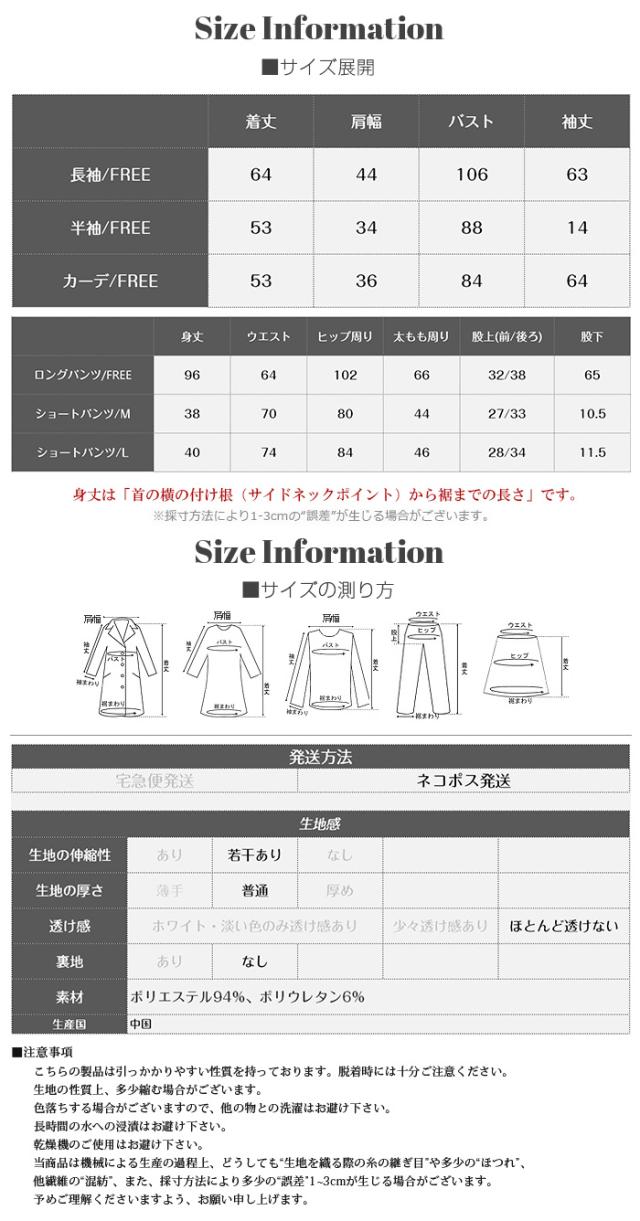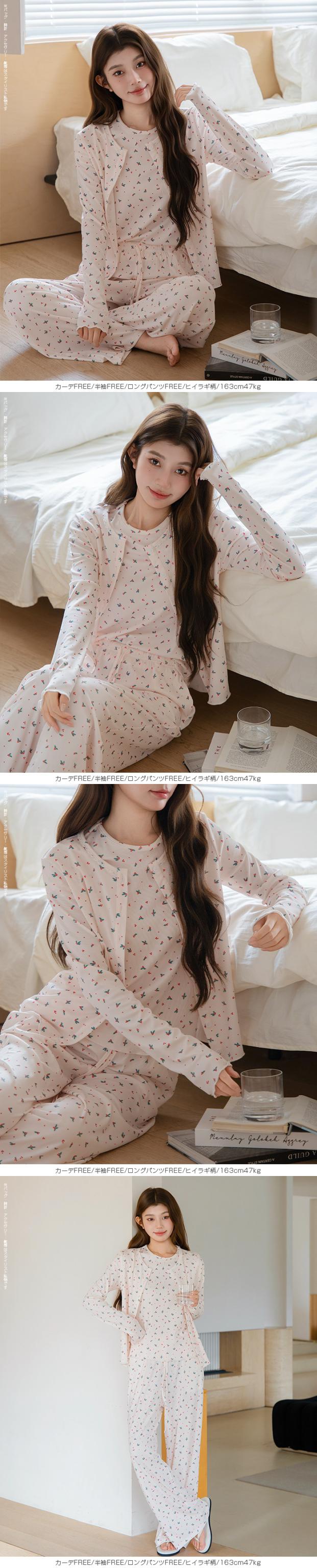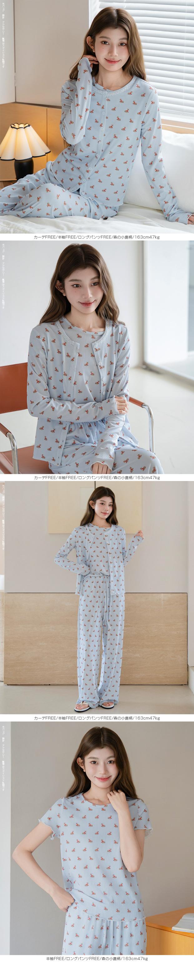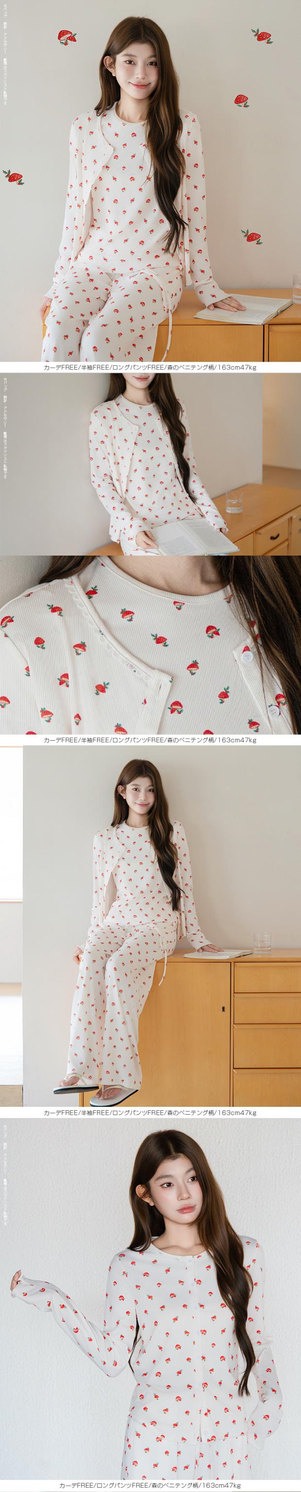 毎日着るものだから、 “ラク”だけじゃなく“気分が上がる”ものを選びたい。 そんな大人の女性に向けた、 可愛さと心地よさを両立したルームウェアセット。 長袖・半袖・カーディガン・ロングパンツ・ショートパンツの 5タイプから自由に選べる組み合わせ仕様。 森のベニテング、バンビ、ヒイラギ—— どこか優しくて、甘すぎない“ちょうどいい可愛さ”の柄が、 おうち時間をそっと豊かにしてくれます。 さらに、トップス・カーデ・パンツを自由に選べる 組み合わせ自在の5タイプ展開。 気温やシーン、ライフスタイルに合わせて、 “自分にちょうどいい1セット”が作れます。 おうち時間はもちろん、ワンマイルや旅行にも使える “着るたび気分が上がるルームウェア”です。 【素材感・着心地】 伸縮性のあるリブ素材(ポリエステル96%・ポリウレタン4%)を使用。 ・やわらかく身体にフィット ・軽くてストレスフリー ・凹凸のあるリブでさらっとした肌触り 長時間着ても疲れにくく、 リラックスタイムに最適な着心地です。 【シルエット・サイズ感】 ゆったりとしたリラックスシルエット。 ・身体のラインを拾いにくい設計 ・ストンと落ちるパンツで脚長見え ・ウエストゴムでラクな履き心地 FREEサイズ中心で体型を選びにくく、 ショートパンツはM/L展開でフィット感も調整可能。 【着回し&コーデ提案】 ・長袖+ロングパンツ → 王道リラックスコーデ ・半袖+ショートパンツ → 夏の快適スタイル ・カーディガンを羽織れば温度調整も◎ 上下別でも使えるので ワンマイルウェアや旅行用としても活躍。 |