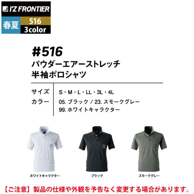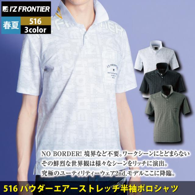 アイズフロンティア 作業服 作業着 516 パウダーエアーストレッチ半袖ポロシャツ S-4L 春夏用