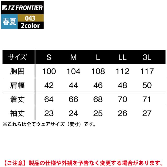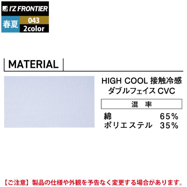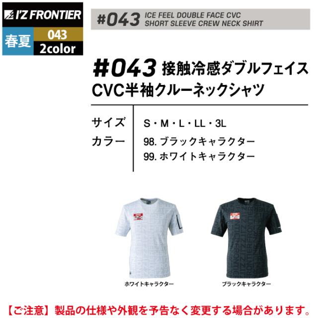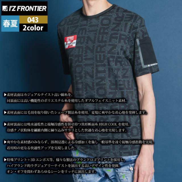 アイズフロンティア 作業服 作業着 043 アイスフィールダブルフェイスCVC半袖クルーネックシャツ S-3L 春夏用