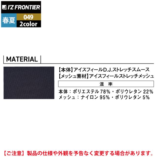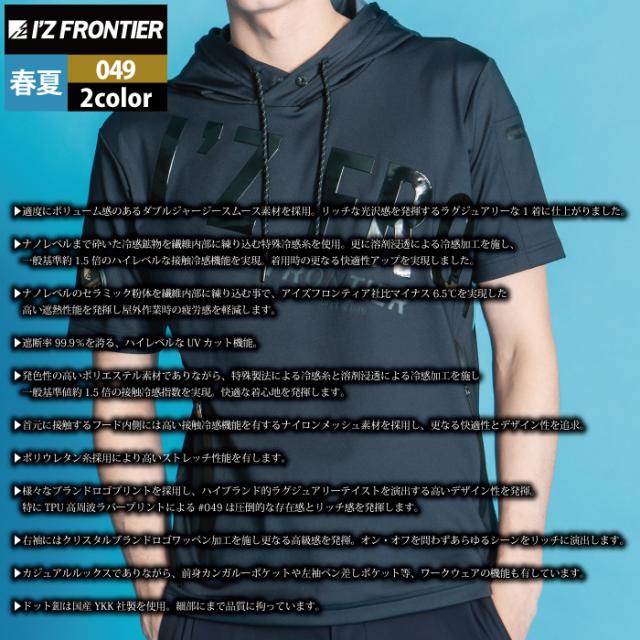 アイズフロンティア 作業服 作業着 049 アイスフィールDJストレッチ半袖フーディー S-3L 春夏用