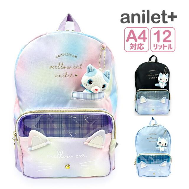 小学生リュック 女の子 mcj-614 anilet+ アニレット ハチネコポケットシリーズ Dパックリュック 12L A4サイズ対応 撥水加工 リュックサック ハチワレネコのマスコット付き 女の子 女子 ガールズ おしゃれ かわいい 通塾 通学 遠足 旅行 修学旅行 小学生 低学年 高学年 中学生