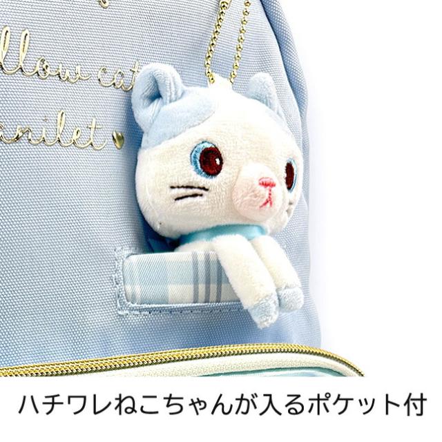ハチワレネコのマスコット付きリュックサック。
