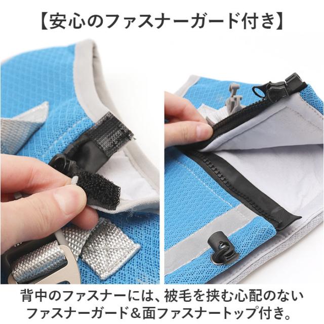 | 商品説明 | 【接触冷感生地でひんやり快適】 ・大型のワンちゃんでも安心、ひんや〜り快適な「ハーネス一体型 クールベスト」が新登場! 【大切なワンコの熱中症対策に】 ・熱した地面を歩く愛犬のことを考えた、お散歩時の暑さを和らげて熱中症を防ぐ快適クールベスト。 【爽快メッシュ×接触冷感素材】 ・通気性抜群のメッシュ+保湿コットン+接触冷感生地の三層構造で、そのまま着ても爽快クール。 【お出掛け前にラクラク装着!】 ・広げたベストに両前脚を通し、背中のファスナー・バックルベルトの順に留めるだけの簡単装着! 【ハーネス一体型デザイン】 ・首輪やハーネスを別に装着する必要がなく、背中のDカンにリードを接続したらすぐにお散歩にGO! ・※ハーネス一体型クールベスト単品での販売です。リードは付属しておりません。 【ワンコの身体に優しい冷たさ】 ・水に濡らしてキュッと絞ってから着せてあげれば、気化熱が身体の熱を逃がし、ひんやりクール。 【冷蔵庫で冷やしてもっとCOOLに】 ・暑さが特に気になる季節には、クールベストを冷蔵庫で冷やしておくとひんやり感がUP! 【繰り返し使えてとってもエコ】 ・必要なのはクールベストと水道水だけ!保冷剤に比べ冷やし過ぎる心配がなく、とってもエコ。 【おトイレ楽ちん・ゆったり設計】 ・ペットのアクティブな動きを妨げない裾の短いデザインで、おトイレの時ももたつかない♪ 【安心のファスナーガード付き】 ・背中のファスナーには、被毛を挟む心配のないファスナーガード&面ファスナートップ付き。 【ご家庭で簡単お洗濯♪】 ・お手入れの楽なポリエステル綿混紡素材だから、手軽にお洗濯が可能!いつでも清潔な着心地。 【夜のお散歩もより安全に】 ・ベストの背中の裾部分に、自動車のライトにキラリと光るリフレクター素材のラインを配置。 【クールネックもオススメ】 ・水に濡らして使うドッグ用「クールネック」と一緒にお使いいただくと、暑さ対策により効果的! ・※「クールネック」は、別商品ページでお買い求めいただけます。ストアの検索窓に、英数字の商品コード「clnk029」を入力して、検索してください。 |