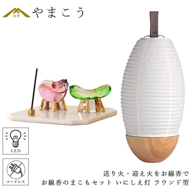 盆提灯 初盆 モダン ミニ お盆 提灯 新盆 お盆飾り 仏具 お線香のまこもセット 夏あかり・岐阜シリーズ いにしえ灯 ラウンド型 コードレス led お盆用品 お供え おしゃれ 送り火 迎え火