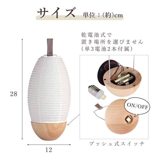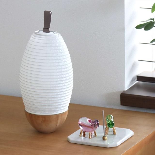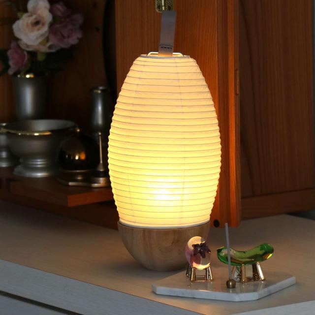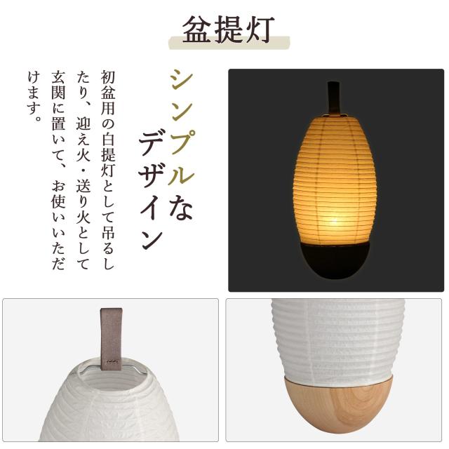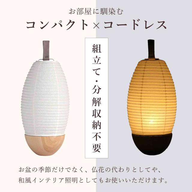 迎え火・送り火として玄関に置いたり、初盆用の「白提灯」として吊るしたり、コードレスタイプですので取り扱いが簡単。モダン仏壇の傍らにも、調和のとれるサイズ感と、しっくり馴染む趣き。