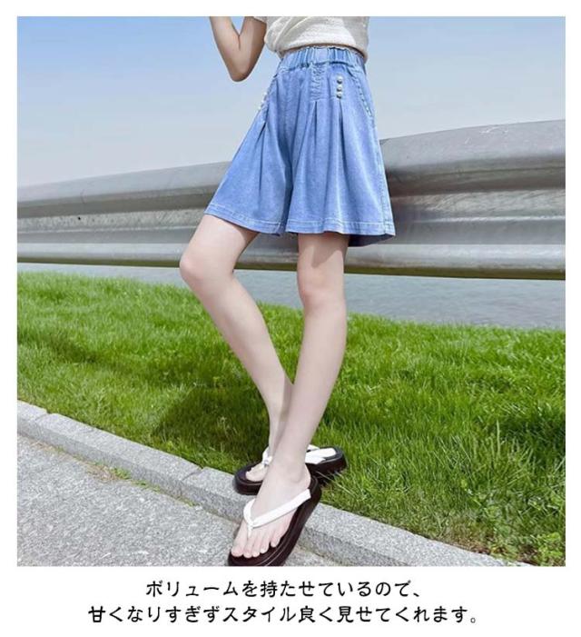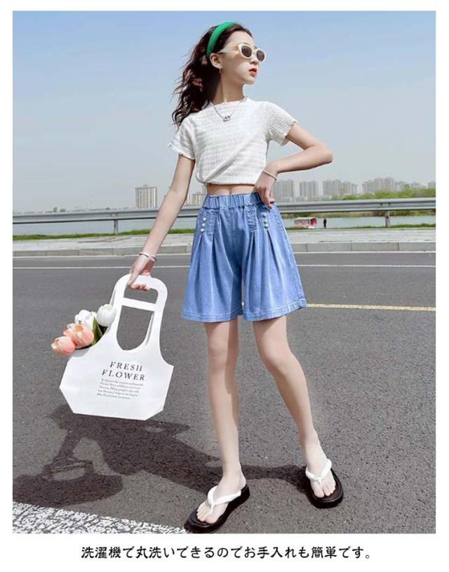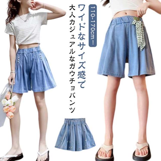ショートパンツ スカーチョ 冷感 キュロット ガウチョ 夏 キッズ 接触冷感 女の子 デニム ガウチョパンツ ワイドパンツ 子供服 五分丈 涼しい ひんやりスカンツ 涼しい ガールズ ジュニア 女児 ワイドパンツ ボトムス 通園 通学 110 120 130 140 150 160 170